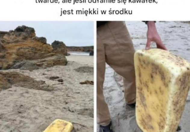 10. Co wyrzuciło na brzeg? To dość ciężka rzecz, twarda, ale jeśli odłamie się kawałek, w środku jest miękka.