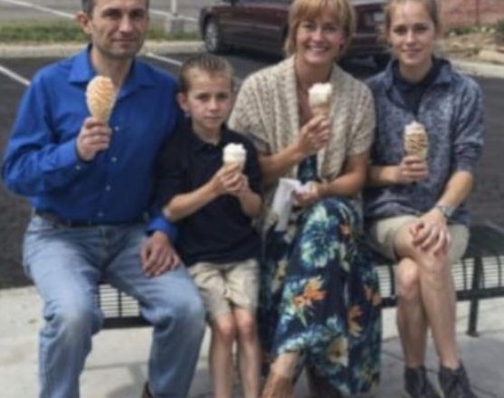 Na ławce obok parkingu siedziała szczęśliwa rodzina: ojciec, matka i dwoje uroczych dzieci. Joyce tak się nimi zachwyciła, że poprosiła o zgodę na zrobienie zdjęcia.