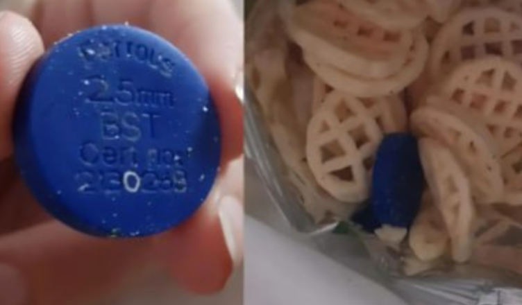 Okazało się, że ten niebieski dysk to testowy chip, który służy do sprawdzania działania wykrywaczy metalu.