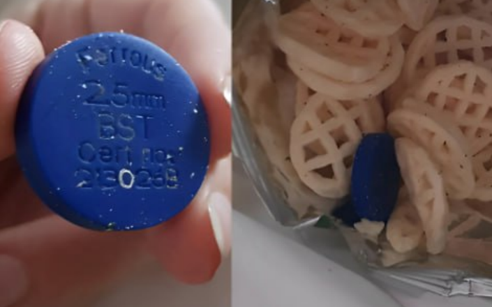 Okazało się, że ten niebieski dysk to testowy chip, który służy do sprawdzania działania wykrywaczy metalu.