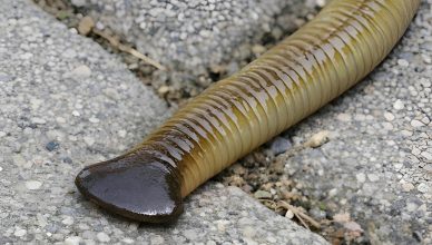 Zauważyłem tego długiego robaka z płaską, łopatowatą głową pełzającego po kamieniach tarasu. Wygląda zupełnie nienaturalnie. Co to jest?